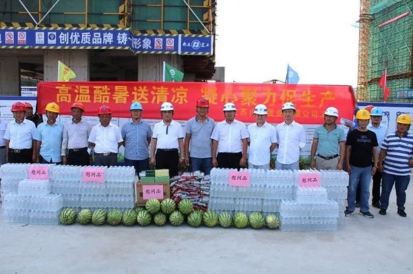 如皋公司為了保證如皋中交·美廬城項目施工生產安全有序推進,做好項目一線防暑降溫工作,公司所屬如皋公司工會開展“高溫酷暑送清涼 凝心聚力促生產”慰問活動,為堅守在高溫中的一線員工送去了“清涼”和關懷,為項目一線的管理人員和農民工兄弟送去了毛巾、礦泉水、消暑飲料、水果等各種防暑降溫物品。工人們接到如皋公司工會送來的慰問品后紛紛表示,一定會克服酷暑高溫,堅守崗位、盡職盡責,積極投身于施工生產中,并保質保量的完成如皋公司下達的各項任務目標。炎炎夏日送清涼,絲絲關愛入心田,送清涼活動不僅送去了如皋公司的關懷,更是極大地鼓舞了一線工人的干勁,促進了項目的安全生產,為實現全年任務目標打下了堅實的基礎。
